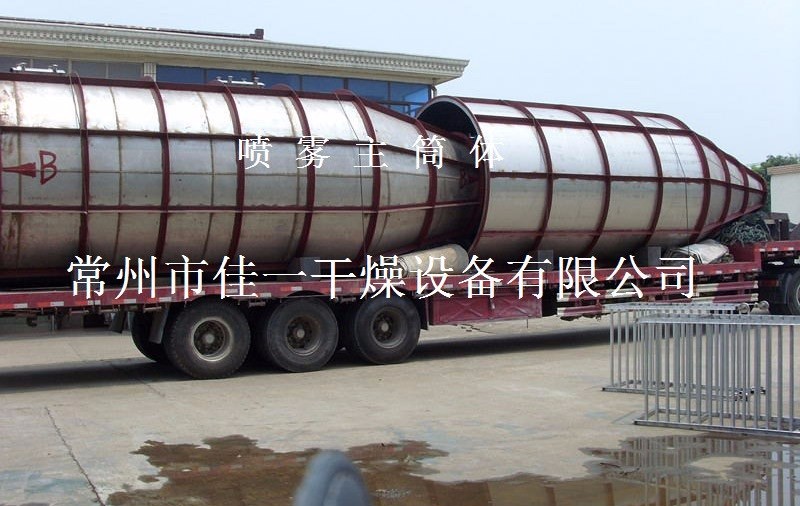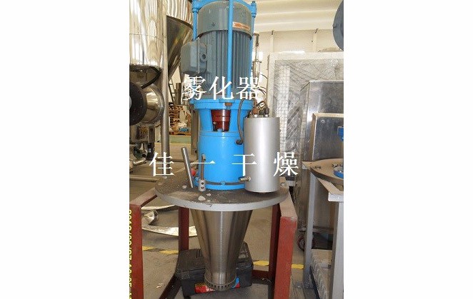 空氣經過濾和加熱,進入干燥器頂部空氣分配器,熱空氣呈螺旋狀均勻地進入干燥室。料液經塔體頂部的高速離心霧化器,(旋轉)噴霧成極細微的霧狀液珠,與熱空氣并流接觸在極短的時間內可干燥為成品。成品連續地由干燥塔底部和旋風分離器中輸出,廢氣由風機排空。