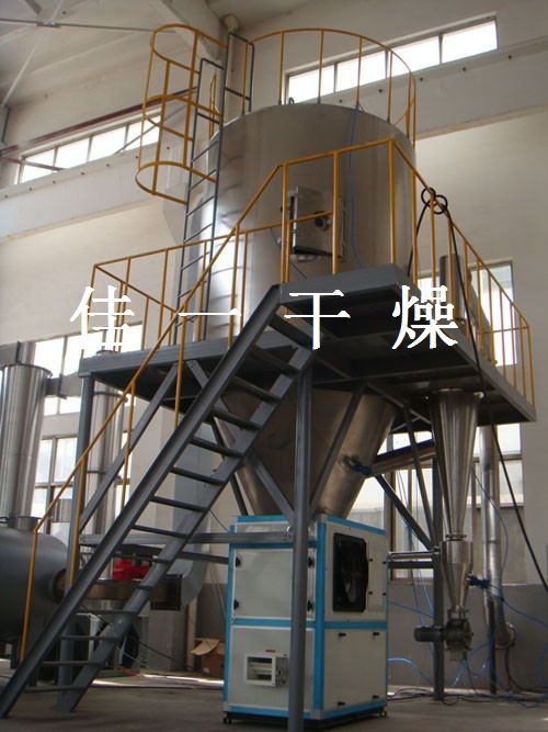 高速離心噴霧干燥機是液體工藝成形和干燥工業中廣泛應用的工藝。適用于從溶液、乳液、懸浮液和糊狀液體原料中生成粉狀、顆粒狀固體產品。因此,當成品的顆粒大小分布、殘留水份含量、堆積密度和顆粒形狀必須符合精確的標準時,噴霧干燥是一道十分理想的工藝。