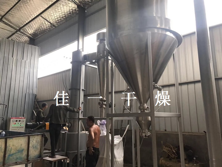 XSG系列快速旋轉閃蒸干燥機是由熱空氣切線進入干燥器底部,在攪拌器帶動下形成強有力的旋轉風場。物料由加料器進入干燥器內,在高速旋轉攪拌槳的強烈作用下,物料受撞擊、磨擦及剪切力的作用下得到分散,塊狀物料迅速粉碎,與熱空氣充分接觸、受熱、干燥。閃蒸干燥性能優勢: