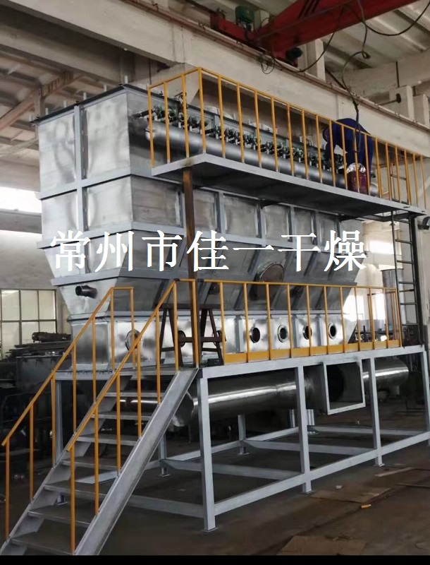 工作原理物料經制粒進入流化床加料口,經過加料口進入干燥機內。空氣經凈化加熱加壓后分別從流化床底部各個送風口吹入,穿過網板與料層接觸,使物料在床層內流化,濕物料與熱風接觸后迅速進行劇烈的傳熱傳質,物料中的水份迅速被汽化,物料從進料端向出料端,依次經過8個干燥室完成干燥冷卻過程,使得產品達到合格物料。 隨著干燥的進行,物料中的水份逐漸降低,物料顆粒在劇烈沸騰時容易產生細粉,細粉從流化床上部擴大體內除塵...