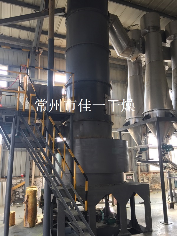 1、原理:旋轉閃蒸干燥機在研制的過程中其著眼點是高強度地增加其分散度,即增加單位體積濕料中的表面積,加速傳熱和傳質過程。所需空氣通過空氣過濾器凈化,經鼓風機送至加熱器加熱后,由底部環縫隙切線進入攪拌粉碎干燥室,產生螺旋上升氣流;濕物料裝入攪拌分散罐里混合,分散均勻后,經螺旋加料器連續定量地加入干燥機中,干燥的干品隨同熱空氣自干燥機上部出口管帶出機外,通過旋風除塵器和布袋除塵器,將干品粉粒收集到料倉...