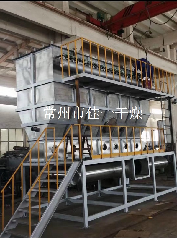 工作原理物料經閃蒸旋風出料口進入流化床加料口,經過加料口進入干燥機內。熱空氣經送風機加壓后分別從流化床底部各個送風口吹入,穿過網板與料層接觸,使物料在床層內流化,濕物料與熱風接觸后迅速進行劇烈的傳熱傳質,物料中的水份迅速被汽化,物料從進料端向出料端,依次經過10個干燥室完成干燥冷卻過程,使得產品達到合格物料。 隨著干燥的進行,物料中的水份逐漸降低,物料顆粒在劇烈沸騰時容易產生細粉,細粉從流化床上部...